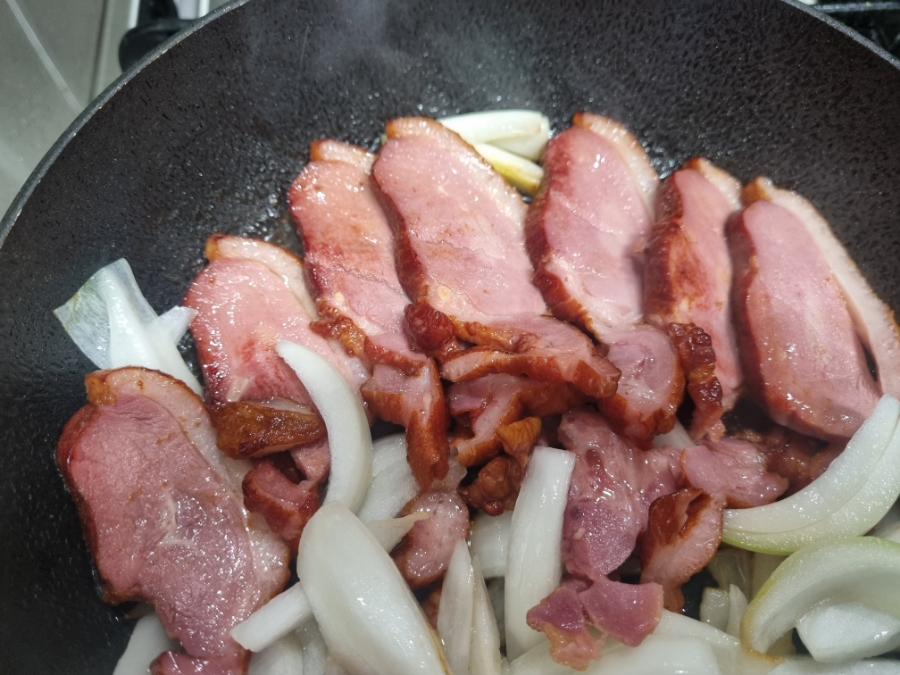 3분~4분 이상 조리하면 훈제오리에서 기름이 나오면서 양파가 볶아지는데 냄새부터가 군침돌게 만듭니다.