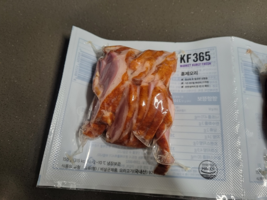 한 번씩 뉴스에 뜨는 훈제오리 관련 기사를 보고 왜 자꾸 음식에 장난질을 하는 것인지 믿고 먹을만한 게 하나도 없다는 현실에 실망감을 감출 수 없기도 한데요, 마켓컬리를 둘러 보면서 좋은 점 하나가 HACCP 인증 시설에서 위생적으로 제조된 훈제오리로 생산유통과정을 믿을 수 있다는 것이 확인이 되니 안심이 되더라고요.