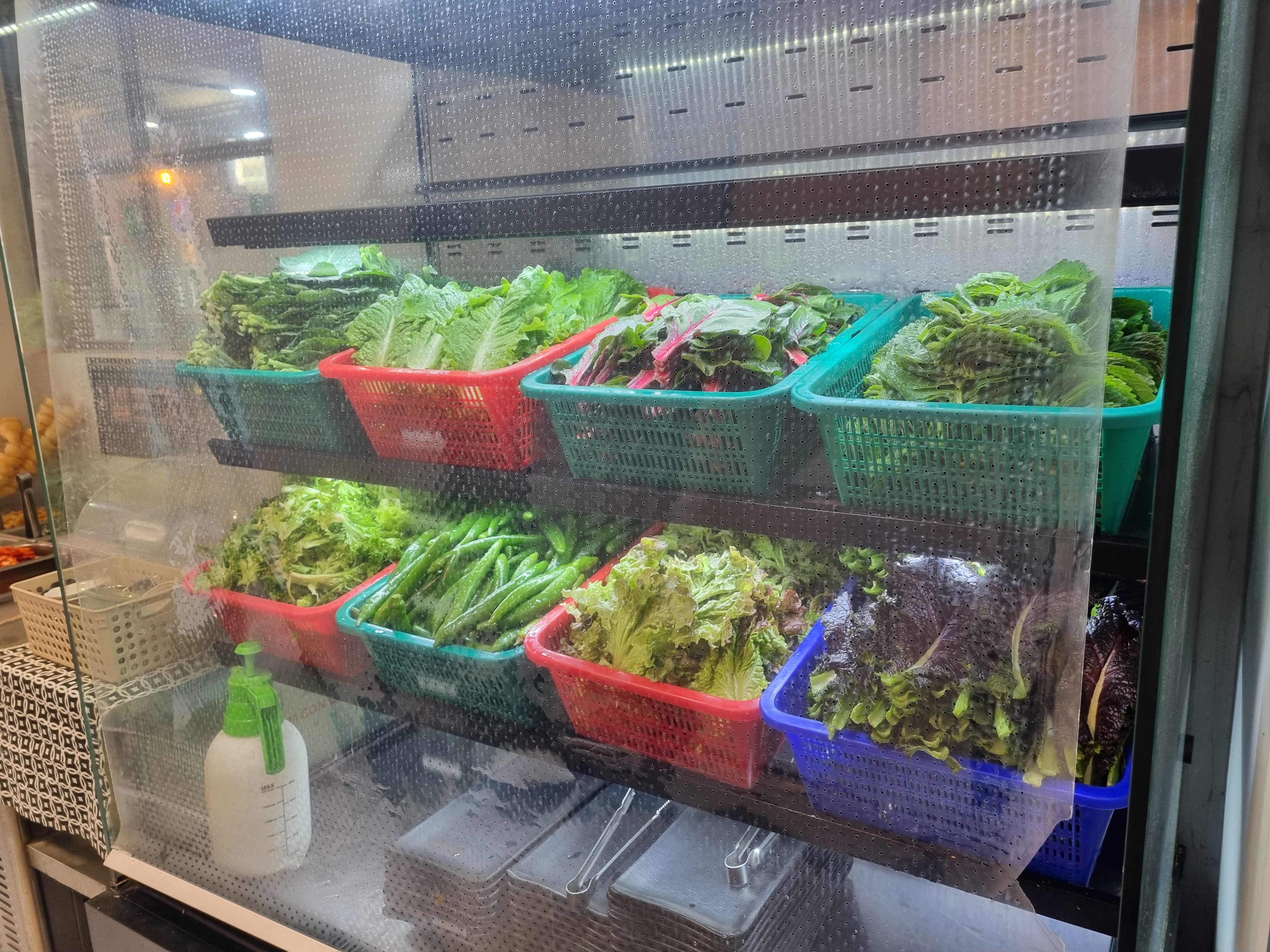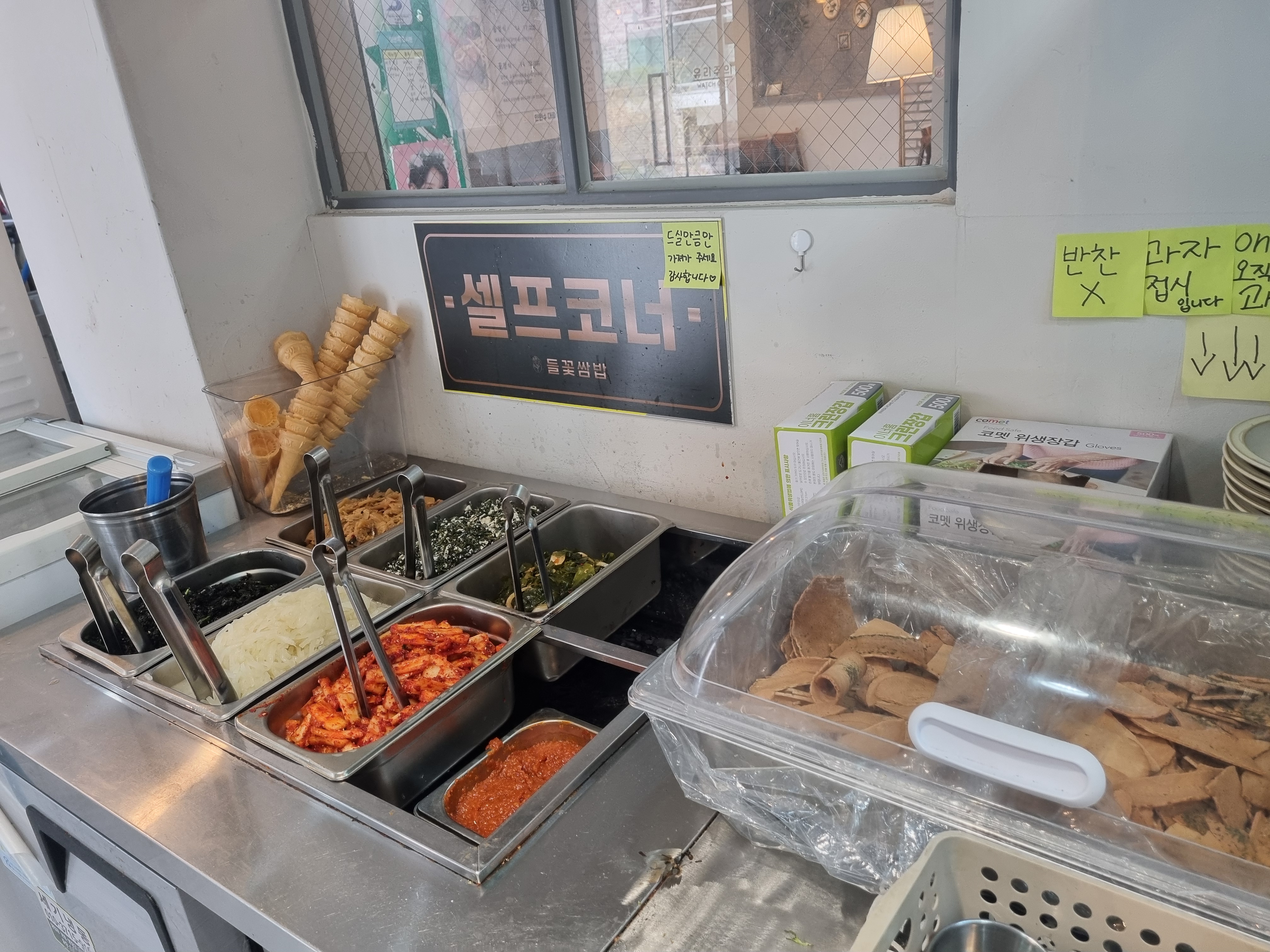 각종 반찬들과 쌈야채가 모두 셀프로 이용되는데요, 6가지의 반찬들이 깔끔하게 정리되어 있고 쌈야채 들도 눈으로 봐도 신선하게 보관되어 있어서 정~~ 말 만족스러웠습니다.