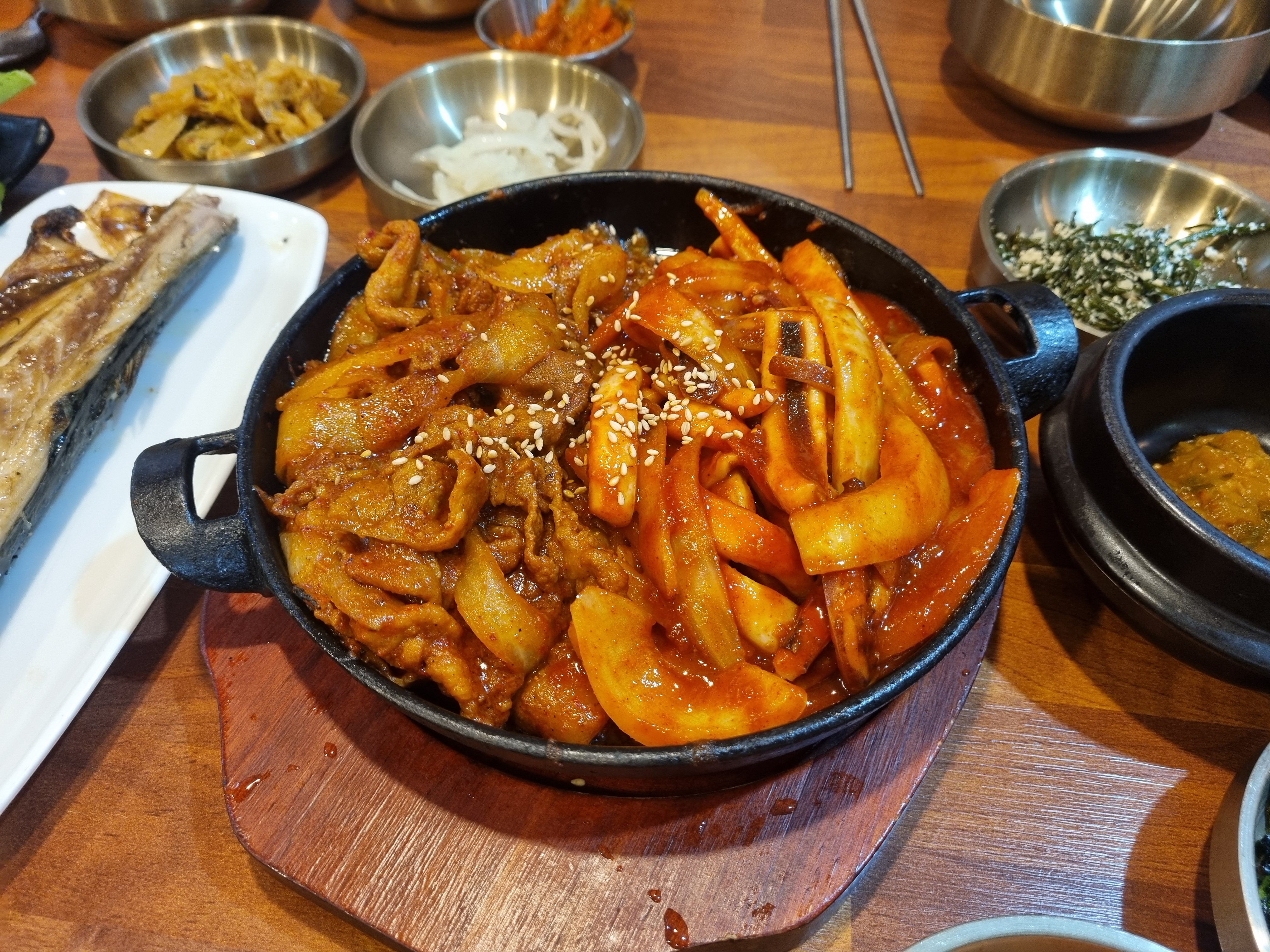 제육볶음도 오징어볶음도 불그스름한 게 입맛이 확 도는 비주얼이에요. 먹다 보니 양도 많다 느껴졌었고 그냥 모든 게 다 깔끔하고 맛있다는 생각이 계속 들었던 거 같아요.