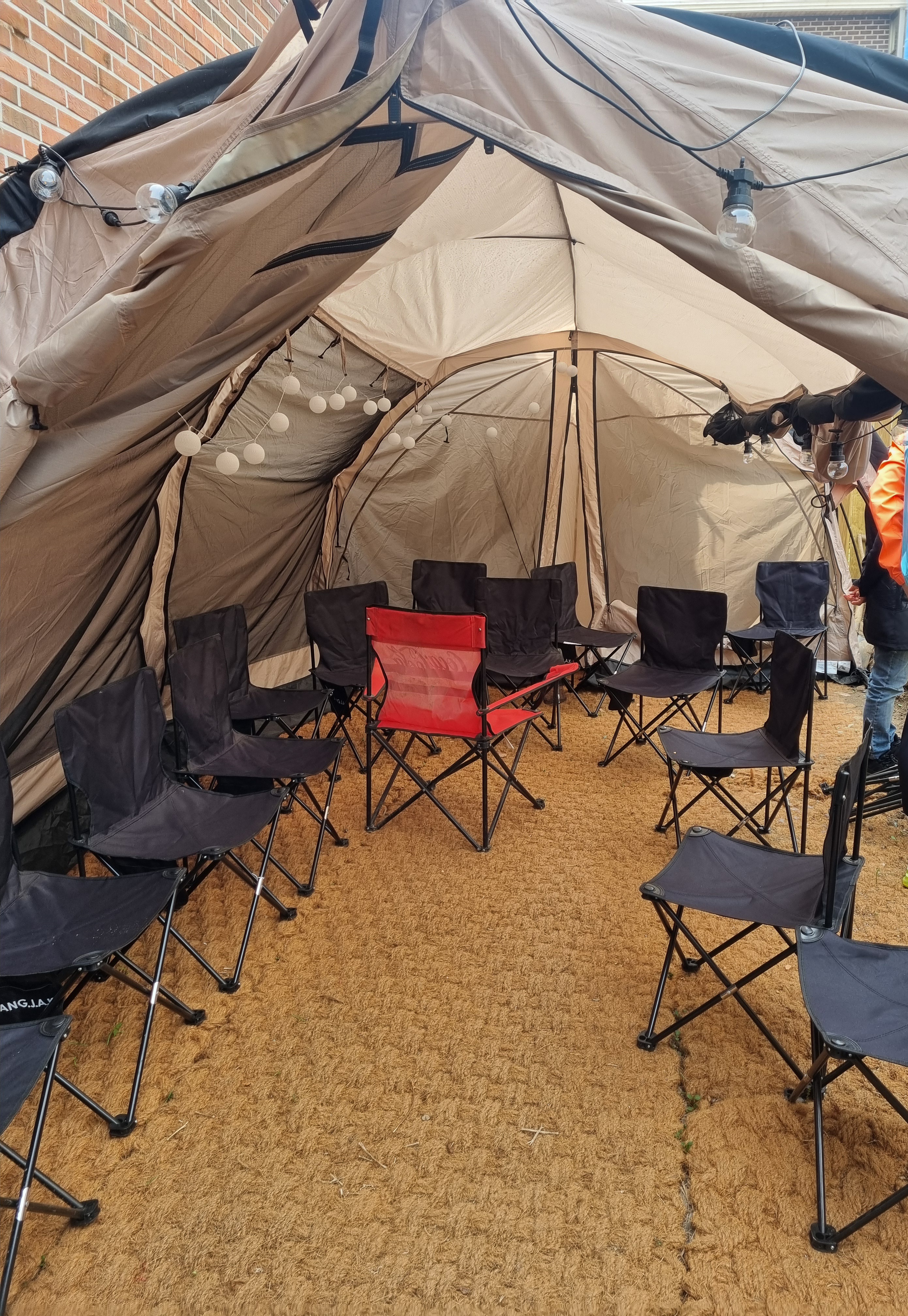 식당 한쪽에 큰 텐트가 있길래 뭔가 싶었는데, 대기할수 있는 공간입니다. 감성템 조명까지 달려있고 아늑한 분위기의 공간에서 온 가족이 둘러앉아 대기했네요.