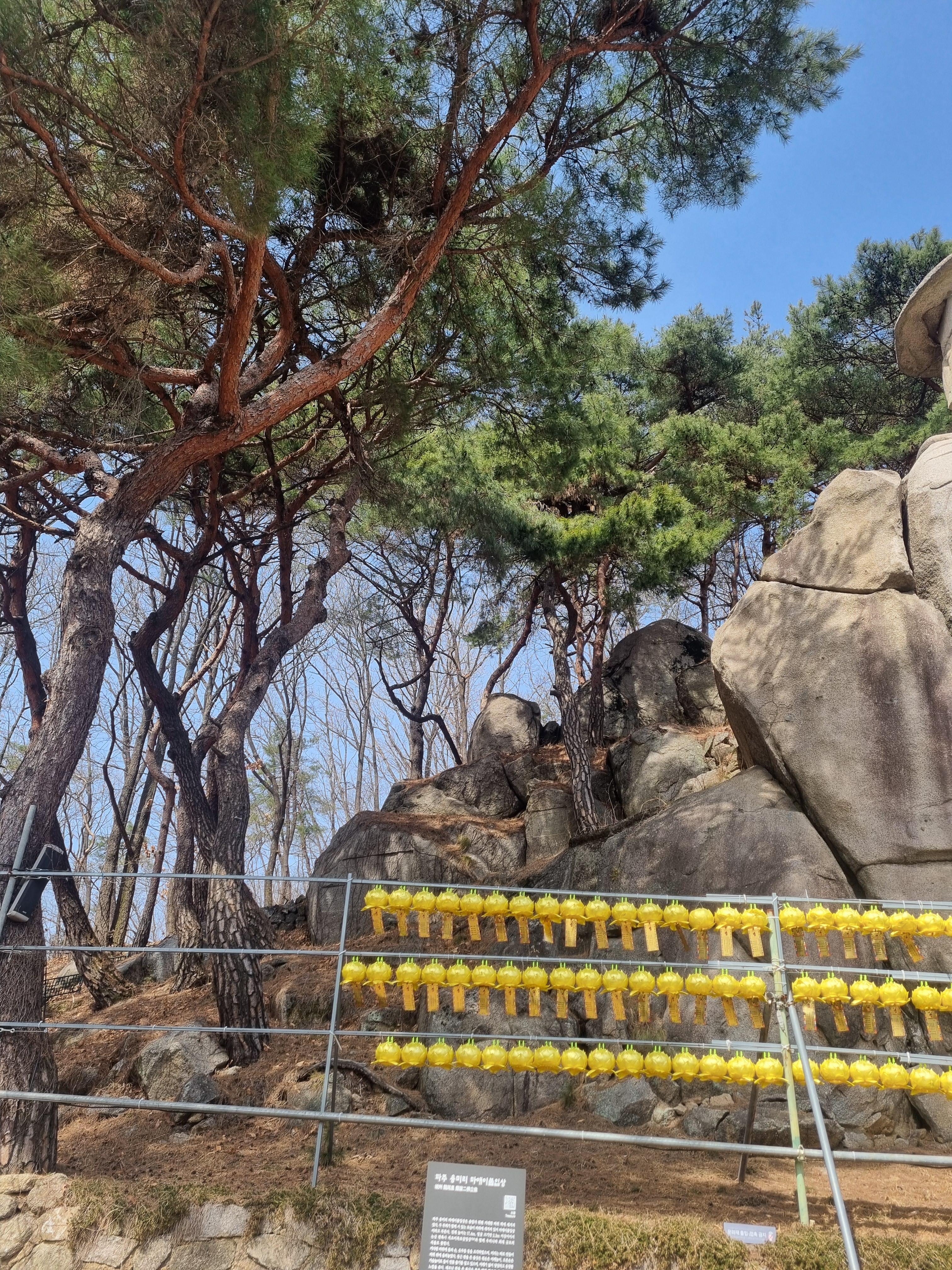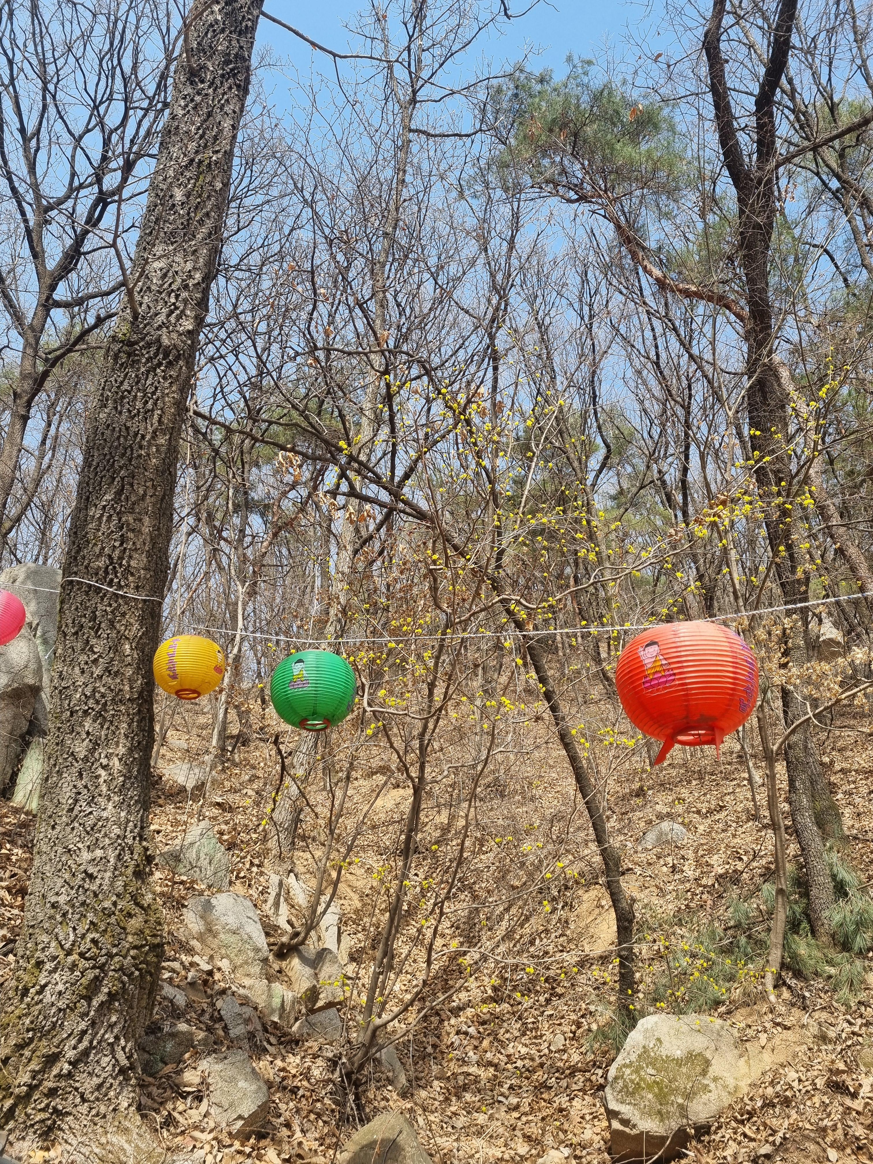 사찰에서 유일하게 알록달록한 느낌을 주는 것이 바로 등이지요? 봄이라는 계절과도 잘 어울리는 알록달록한 색깔의 등들이 자연과도 잘 어울려져 보이는 파주 벚꽃 이 이쁜 곳이기도 한 용암사입니다.